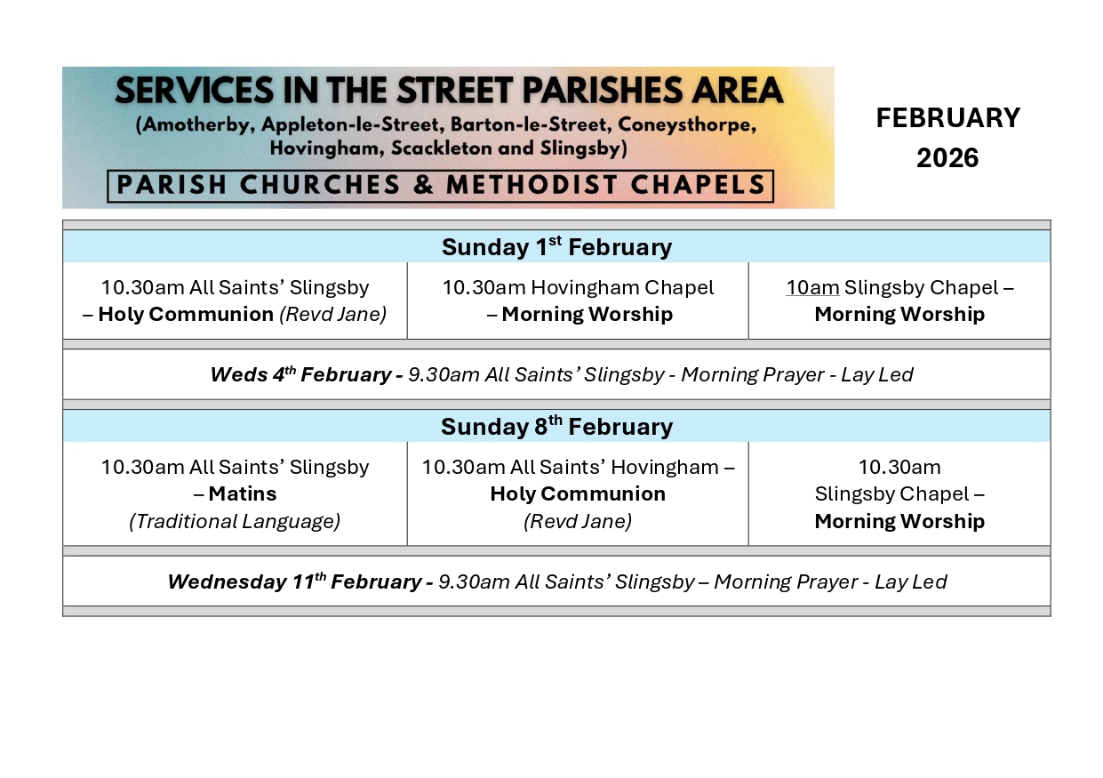 (Amotherby, Appleton-le-Street, Barton-le-Street, Coneysthorpe, Hovingham, Scackleton and Slingsby).